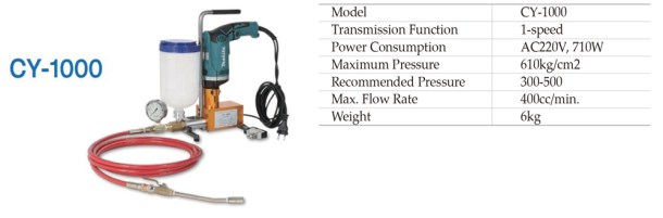 These are component-type high-pressure injection pumps manufactured to fill epoxy resin and polyurethane foam into water leaks or crack areas. They are simple to operate, durable, and designed to replace consumables easily. Because of their compact size, especially, they are commonly used in repairing various concrete structures and reinforcement.