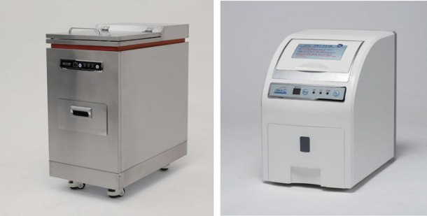 One of its major features is not to create leachate. The model can be installed both indoors and outdoors. It has adopted a dry pulverization method based on a chain scraper. It takes about six hours to complete the whole process. It weighs 93kg with a capacity of 5kg, consuming 1.3KW per hour at the most.