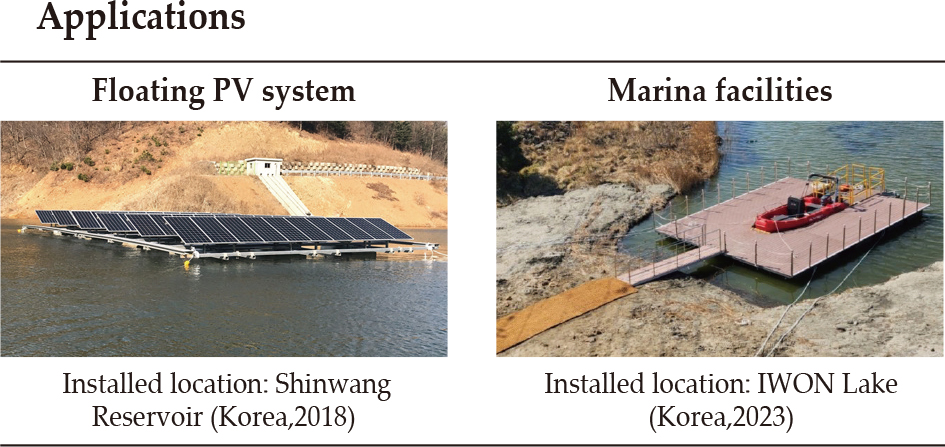 In addition, all materials used in the buoyancy body have secured environmental safety through the ‘Hygiene and Safety Standards Process Test for Waterworks Materials and Products.’ HSC Pontoon-A1 is a technologically innovative product, created with emphasis on durability against salt water and neutralization as well as resistance to wave power.