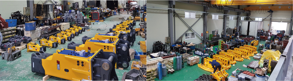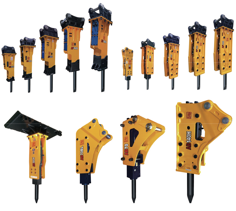 Ace Hammer manufactures various kinds of hydraulic breakers ― top type, box (silenced) type, side type, backhoes loader type, and skid steer loaders type.