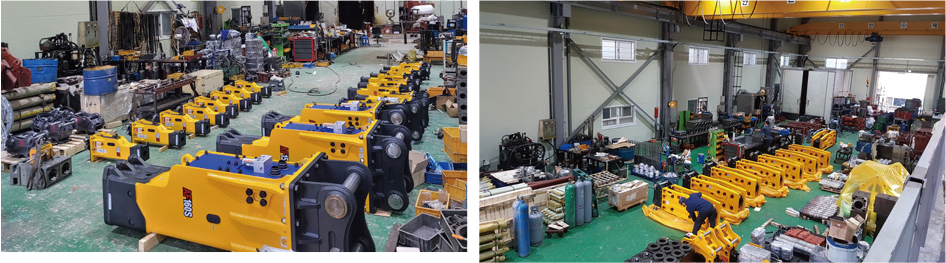 Ace Hammer manufactures various kinds of hydraulic breakers ― top type, box (silenced) type, side type, backhoes loader type, and skid steer loaders type.