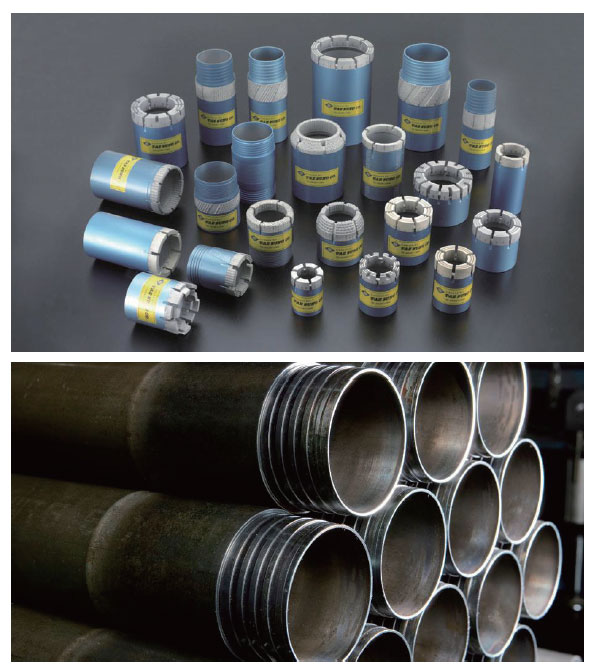 It is thus economical and highly effective in drilling works to use the proper bits after full understanding of the characteristics of each bit. Impregnated diamond core bits are used for the drilling of hard rocks, and metal bits are normally used for the ground or soft rocks.