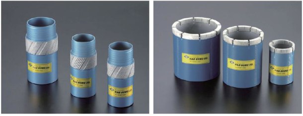 Impregnated diamond core bits are attached to the foremost part of the core barrels to be used in direct drilling of the ground, and play the most important role among the equipment that is used in drilling. There are many types of bits classified and used according to the purpose of drilling or ground conditions, and the bits also differ in terms of their material, shape, and performance.