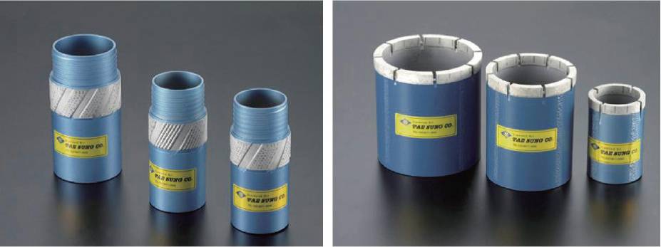 It is thus economical and highly effective in drilling works to use the proper bits after full understanding of the characteristics of each bit. Impregnated diamond core bits are used for the drilling of hard rocks, and metal bits are normally used for the ground or soft rocks.