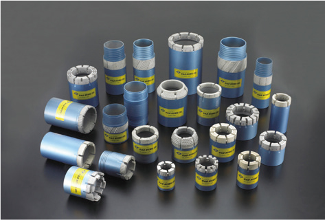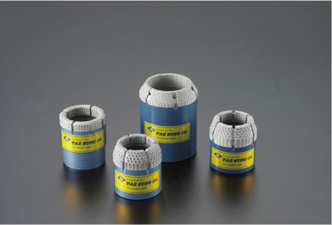 Impregnated diamond core bits are attached to the foremost part of the core barrels to be used in direct drilling of the ground, and play the most important role among the equipment that is used in drilling. There are many types of bits classified and used according to the purpose of drilling or ground conditions, and the bits also differ in terms of their material, shape, and performance.