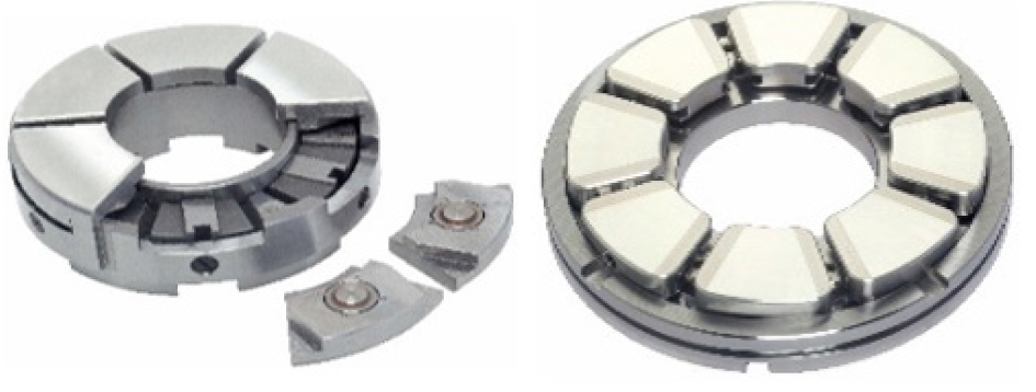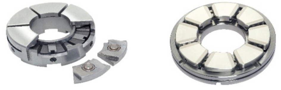 Tilting-pad thrust bearings are used for steam turbine/generators, gas turbines, turbo-compressors, hydraulic turbines/generators, high-pressure pumps, and high-speed gear systems.