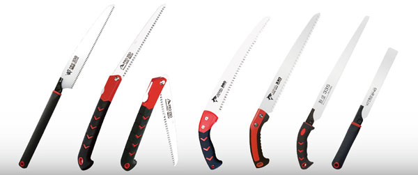 Folding saws are of the portable folding style, having various blade lengths (140, 180, 210, 250, 270, 300 mm), with hard chrome plating.