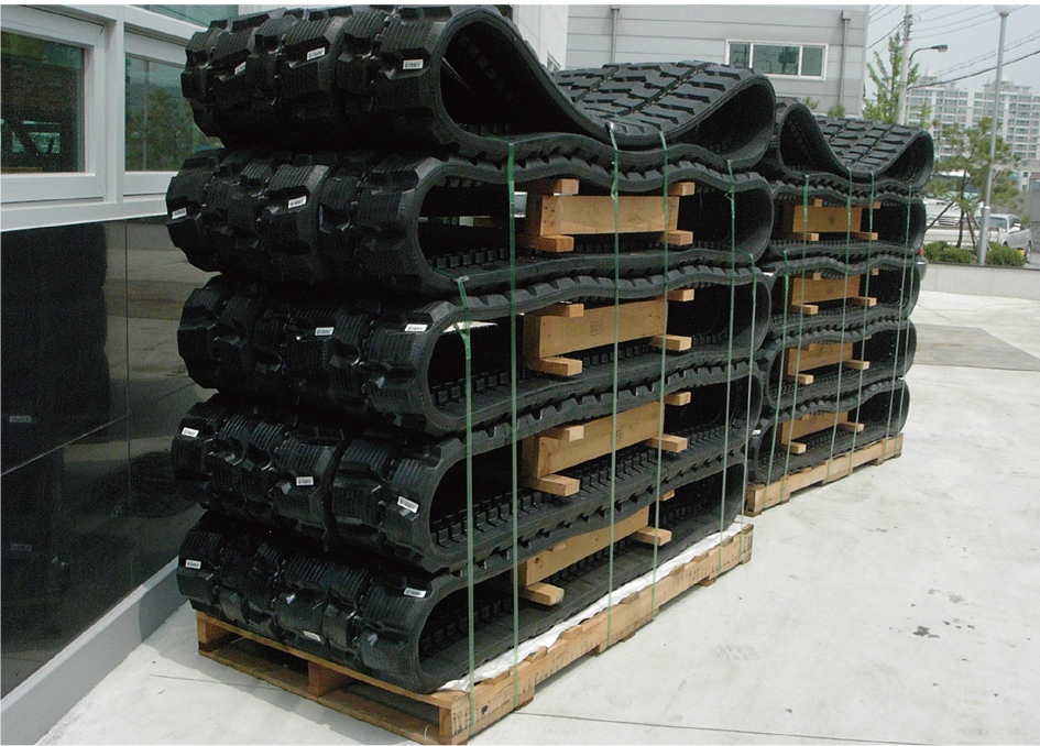 The rubber pad, along with the rubber track (crawler), is a functional rubber product that prevents on-site recovery costs or complaints caused by heavy equipment such as excavators damaging the ground or structure floor of road surfaces when moving and working on-site.