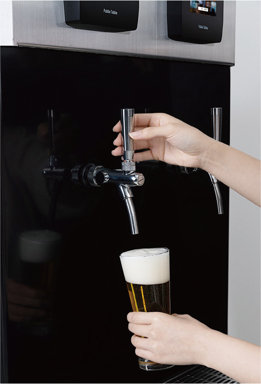 Other than the self-function, it provides smart functions such as blocking improper use, measuring the amount of beer left, detecting sold-out beers, etc., by utilizing POS, real-time communications, and sensor technologies.