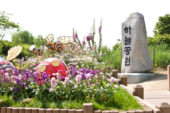 Haneul Park, located within World Cup Park, offers amazing views of the city as well as beautiful flowers and interesting sculptures. Man-made structures and facilities are limited within the park, as it was formed as a restoration project to preserve the ecological environment. Visitors are recommended to prepare a few drinks and snacks in advance before visiting. Colonies of forsythias can be found along both sides of the trekking paths, creating the mood to enjoy spring to its fullest.