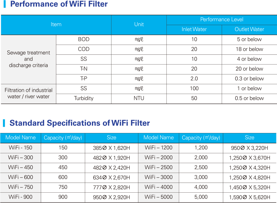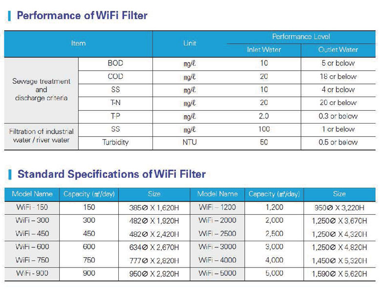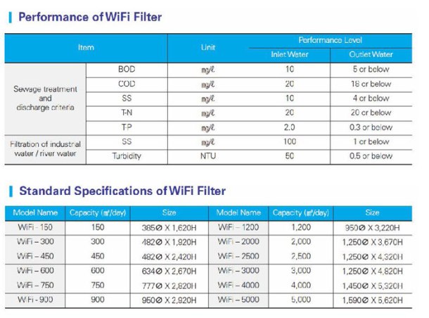 WIDU’s WiFi Filter is short for Wide Fiber Filter, which is “pull/rotation fiber filtering equipment” used to improve the water quality of purification facilities, sewage treatment plants, wastewater plants and re-circulated filteration facilities by utilizing the fiber filter media with activated carbon added inside the strainer.